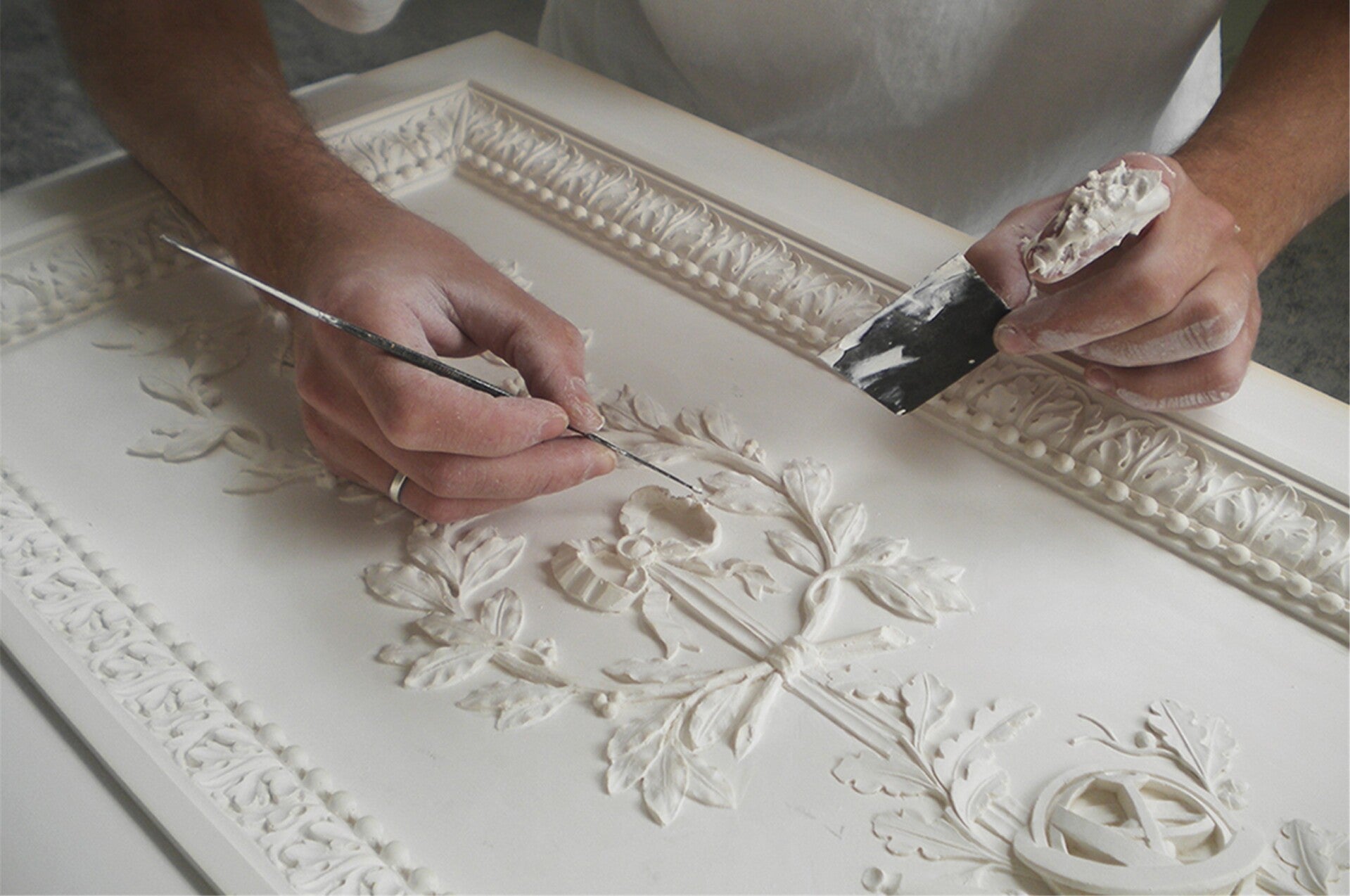 Formés aux techniques traditionnelles du staff, du plâtre et du moulage, nous maitrisons l'art de façonner des ornements uniques, de restaurer des décors patrimoniaux et de créer des pièces sur mesure qui subliment l'espace.